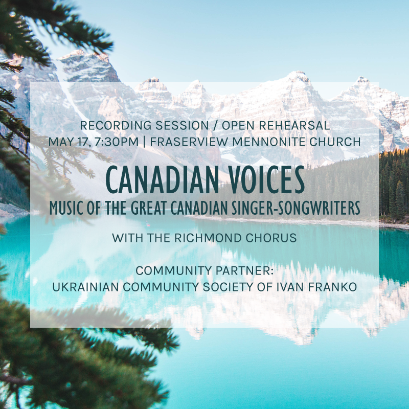 Join the Richmond Chorus in a recording session / open rehearsal! Our community partner for this concert is the Ukrainian Community Society of Ivan Franko (Richmond), as they work to provide support to those in Ukraine as well as those refugees now entering Canada.